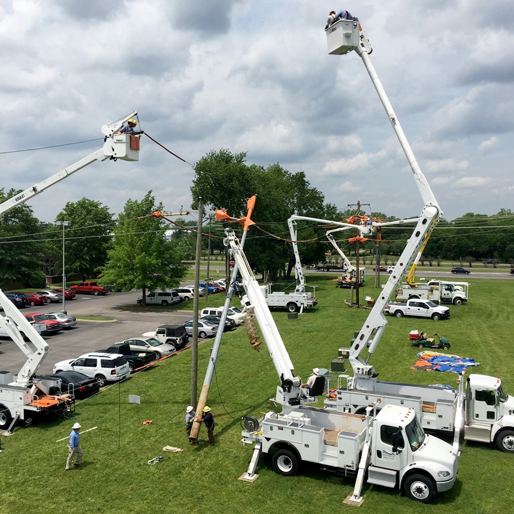 This program is designed to meet the training requirements of OSHA for operator training of aerial devices and digger-derricks; and working on energized lines and equipment. Emphasis is placed on pre-operational inspection, proper set-up, capabilities and limitations of equipment. Participants are instructed in proper use of cover-up materials for personal protection. Field exercises include hands-on projects on simulated energized lines and structures common to electric distribution utilities. Various types of equipment are used for training of operators and lineman.